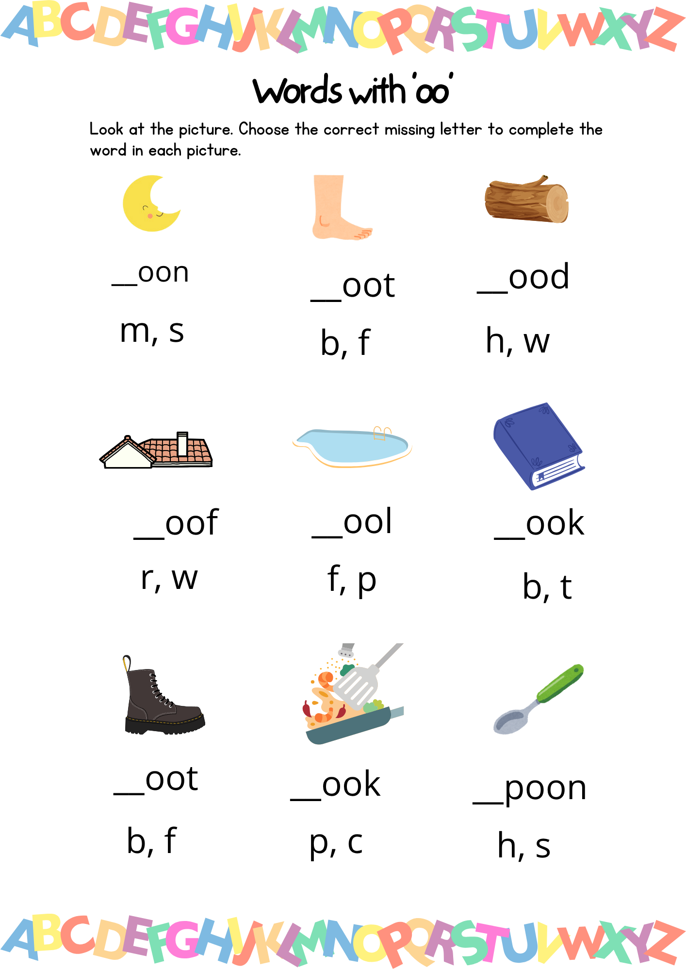 Each page is filled with fun pictures and interactive activities encouraging your child to think about the words and how to complete the words with the correct letters.